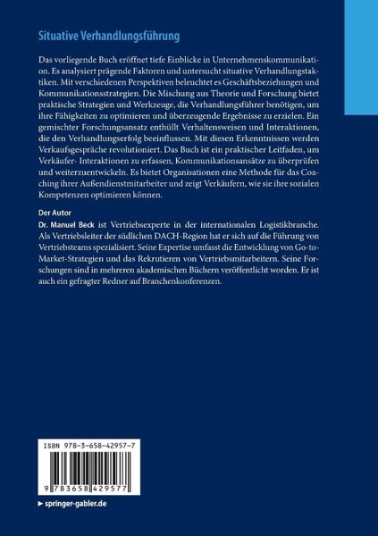 Das vorliegende Buch eröffnet tiefe Einblicke in Unternehmenskommunikation. Es analysiert prägende Faktoren und untersucht situative Verhandlungstaktiken. Mit verschiedenen Perspektiven beleuchtet es Geschäftsbeziehungen und Kommunikationsstrategien. Die Mischung aus Theorie und Forschung bietet praktische Strategien und Werkzeuge, die Verhandlungsführer benötigen, um ihre Fähigkeiten zu optimieren und überzeugende Ergebnisse zu erzielen. Ein gemischter Forschungsansatz enthüllt Verhaltensweisen und Interaktionen, die den Verhandlungserfolg beeinflussen. Mit diesen Erkenntnissen werden Verkaufsgespräche revolutioniert. Das Buch ist ein praktischer Leitfaden, um Verkäufer-Interaktionen zu erfassen, Kommunikationsansätze zu überprüfen und weiterzuentwickeln. Es bietet Organisationen eine Methode für das Coaching ihrer Außendienstmitarbeiter und zeigt Verkäufern, wie sie ihre sozialen Kompetenzen optimieren können.
