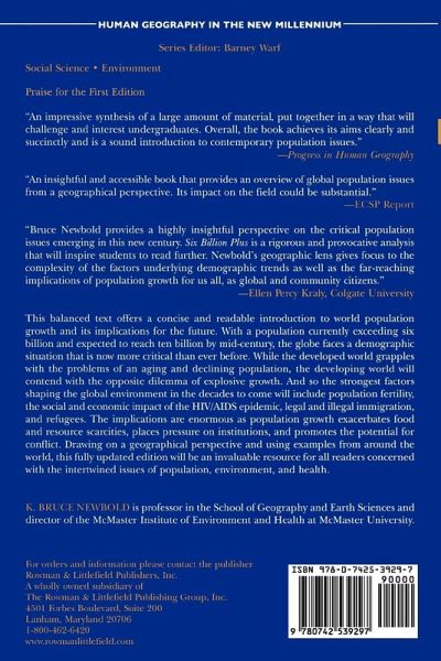 Recognizing that world population growth will be explosive well into the twenty-first century, Six Billion Plus offers a geographical and global perspective on the profound implications of this trend. This compact, balanced, and accessible text focuses on the key factors that will shape the global environment in the decades to come, including population fertility, epidemics like HIV/AIDS, legal and illegal immigration, refugee flows, scarce resources, and the potential for conflict. This fully updated edition will be an invaluable resource for all readers concerned with the intertwined issues of population, environment, and health.