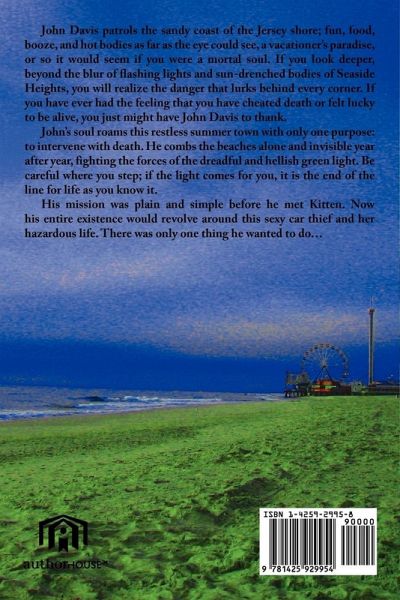 John Davis patrols the sandy coast of the Jersey shore. Fun, food, booze and hot bodies as far as the eye could see. A vacationer's paradise or so it would seem if you were a mortal soul. If you look deeper, beyond the blur of flashing lights and sun-drenched bodies of Seaside Heights you will realize the unexpected danger that lurks behind every corner. If you ever had the feeling that you have cheated death or felt lucky to be alive, you just might have John Davis to thank.John's soul roams this restless summer town with only one purpose, to intervene with death. He combs the beaches alone and invisible, year after year fighting the forces of the dreadful and hellish green light. Be careful where you step, if the light comes for you it is the end of the line for life, as you know it.His mission was plane and simple before he met Kitten. John's desire causes his soul to roam for a new purpose and his entire existence begins to revolve around this sexy car thief and her hazardous life.
