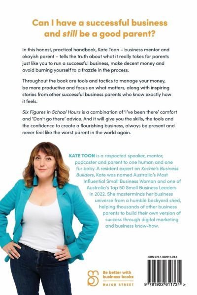 Can I have a successful business and still be a good parent? In this honest, practical handbook, Kate Toon - business mentor and okayish parent - tells the truth about what it really takes for parents just like you to run a successful business, make decent money and avoid burning yourself to a frazzle in the process. Throughout the book are tools and tactics to manage your money, be more productive and focus on what matters, along with inspiring stories from other successful business parents who know exactly how it feels. Six Figures in School Hours is a combination of 'I've been there' comfort and 'Don't go there' advice. And it will give you the skills, the tools and the confidence to create a flourishing business, always be present and never feel like the worst parent in the world again.