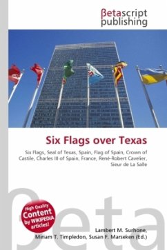 High Quality Content by WIKIPEDIA articles! Six flags over Texas is the slogan used to describe the six nations that have had sovereignty over some or all of the current territory of the U.S. state of Texas. This slogan has been incorporated into shopping malls, theme parks (Six Flags), and other enterprises. The "six flags" are also shown on the reverse of the Seal of Texas. In 1997 the Texas Historical Commission adopted standard designs for representing the six flags. The first flag belonged to Spain, which ruled most of Texas from 1519 to 1685 and from 1690 to 1821. There were two versions of the Spanish flag used during this period. Both designs incorporate the "castle and lion" emblems of the Crown of Castile. The Spanish flag used in the reverse of the Texas state seal, which was also adopted by the Texas State Historical Commission, is the flag adopted by King Charles III, containing horizontal stripes of red-gold-red and the simple arms of Castile and Leon.