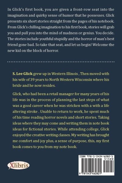 In Glick’s first book, you are given a front-row seat into the imagination and quirky sense of humor that he possesses. Glick presents six short stories straight from the pages of his notebook. From Glick’s chilling imagination to his first book, stories will grab you and pull you into the mind of madness or genius. You decide. The stories include youthful stupidly and the horror of man’s best friend gone bad. So take that seat, and let us begin! Welcome the new kid on the block of horror.