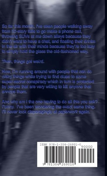 So far this month, I've seen people walking away from 50-story falls to go make a phone call, throwing SUVs at me down alleys because they didn't want to have a chat, and floating their drinks in the air with their minds because they're too lazy to simply hold the glass the old-fashioned way. Then, things got weird. Now, I'm running around with people that can do crazy things while trying to find clues to some super-secret conspiracy which in turn is protected by people that are very willing to kill anyone that annoys them. And why am I the one having to do all this you ask? Funny. I've been wondering the exact same thing. I'll never look disparagingly at paperwork again.