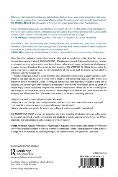 Many first-time readers of Jacques Lacan come to his work via psychology, a discipline that Lacan was notoriously antagonistic toward. Six Moments in Lacan takes up the dual challenge of introducing Lacanian psychoanalysis to an audience interested in psychology, while also stressing the fundamental differences between the two disciplines. Punctuated by lively examples, Six Moments in Lacan demonstrates the distinctive value of Lacanian concepts in approaching afresh topics such as communication, identity, otherness and inter-subjectivity. Avoiding the jargon and wilful obscurity that so often accompanies expositions of Lacan's psychoanalytic theories, this book puts Lacanian ideas to work in practical and illuminating ways. A handful of concepts, draw from distinct moments in Lacan's teaching, are contextualized and explained, and applied to the task of exploring the 'psychological' and unconscious dimensions of everyday life. Notions such as the 'big Other', 'full' versus 'empty' speech, logical time, 'imaginary' and 'symbolic' identification, and the idea of 'the master signifier' are brought to life via popular cultural references. Revitalizing several Freudian and Lacanian concepts for everyday use, Six Moments in Lacan asks - and answers - a series of compelling questions:¿ Why is it that each instance of speech implies a listener? Why is the notion of subjectivity inadequate when it comes to the 'trans-subjective' nature of language? Is it possible to elaborate a 'non-psychological' theory of identification? Why is a Lacanian approach to 'the subject' so at odds with models proposed by psychology? Six Moments in Lacan provides an accessible and highly engaging introduction to Lacan and Lacanian psychoanalysis, aimed at early practitioners and students in psychoanalysis, psychotherapy and those studying upper undergraduate and postgraduate level psychology.
