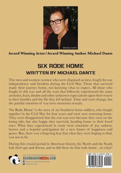 The men and women; women who were disguised as men, fought for our independence and freedom during the Civil War. Those that survived made their journey home, not knowing what to expect. All those who fought in this war and all the wars that followed, experienced the same anxieties, fears, doubts and other unknown expectations upon their return to their families and the life they left behind. Time and wars change, but the painful emotions of war torn memories remain. ‘Six Rode Home’ is the story of six Southern horse soldiers, who fought together in the Civil War for four years and were now returning home. They were disappointed that the war was over because they were on the losing side, but also happy they survived, heading home to their loved ones. What they experienced in route were emotions of joy, sadness, horror and a hopeful anticipation for a new future of happiness and peace. But, there was a lingering fear that what they were hoping to find, was not to be. During this crucial period in American history, the North and the South had their ups and downs, and so did these six that rode home…to what?