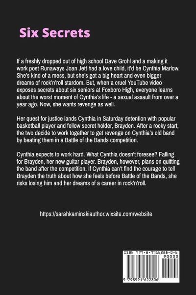If a freshly dropped out of high school Dave Grohl and a making it work post Runaways Joan Jett had a love child, it'd be Cynthia Marlow. She's kind of a mess, but she's got a big heart and even bigger dreams of rock'n'roll stardom. But, when a cruel YouTube video exposes secrets about six seniors at Foxboro High, everyone learns about the worst moment of Cynthia's life - a sexual assault from over a year ago. Now, she wants revenge as well. Her quest for justice lands Cynthia in Saturday detention with popular basketball player and fellow secret holder, Brayden. After a rocky start, the two decide to work together to get revenge on Cynthia's old band by beating them in a Battle of the Bands competition. Cynthia expects to work hard. What Cynthia doesn't foresee? Falling for Brayden, her new guitar player. Brayden, however, plans on quitting the band after the competition. If Cynthia can't find the courage to tell Brayden the truth about how she feels before Battle of the Bands, she risks losing him and her dreams of a career in rock'n'roll.
