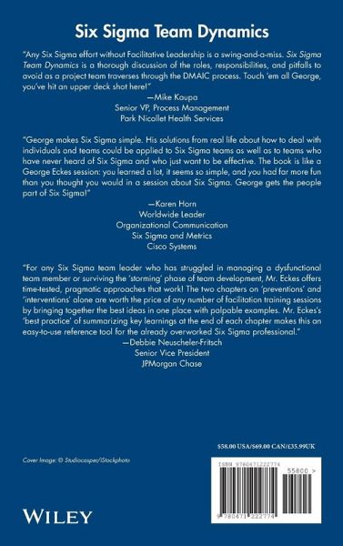 A full, expert discussion of the last major component of Six Sigma implementation George Eckes' first two books on Six Sigma-The Six Sigma Revolution and Making Six Sigma Last-dealt with Six Sigma from a strategic level and from a cultural level, respectively. Six Sigma Team Dynamics covers the last component of Six Sigma-improving team processes. The successful completion of Six Sigma depends on teams working together and applying a proven methodology that defines, measures, analyzes, improves, and controls the process. These team dynamics and the roles and responsibilities of all constituencies are the last remaining key to successful Six Sigma implementation.
