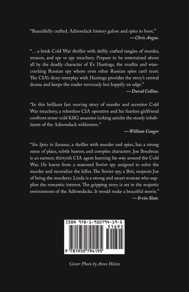 It's 1964, and a body with a bullet hole in the forehead is found floating in the Raquette River, miles from the nearest town. Upstream, hidden at a titanium mine, a clandestine lab works on the design for a new fighter plane - a plane Moscow-based CIA assets soon discover the Soviets have intel on. Was the killing connected to the stolen data? Is there a spy in the Adirondacks? That's what Air Force officer turned undercover CIA agent Joe Boudreau is sent to investigate, alongside his girlfriend, a local teacher. Then a professional assassin appears on the scene. He's English, was trained by the British for "special operations" during WWII, and is now working for the Soviets. The assassin, it turns out, does his work with a light touch and a taste for irony. Why is he there? Who was the man found in the river? Who killed him?
