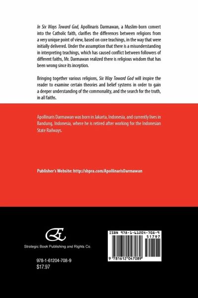 In Six Ways Toward God, Apollinaris Darmawan, a Muslim-born convert into the Catholic faith, clarifies the differences between religions from a very unique point of view, based on core teachings, in the way that were initially delivered. Under the assumption that there is a misunderstanding in interpreting teachings, which has caused conflict between followers of different faiths, Mr. Darmawan realized there is religious wisdom that has been wrong since its inception. Bringing together various religions, Six Way Toward God will inspire the reader to examine certain theories and belief systems in order to gain a deeper understanding of the commonality, and the search for the truth, in all faiths. Apollinaris Darmawan was born in Jakarta, Indonesia, and currently lives in Bandung, Indonesia, where he is retired after working for the Indonesian State Railways. Publisher's website: http://sbpra.com/ApollinarisDarmawan