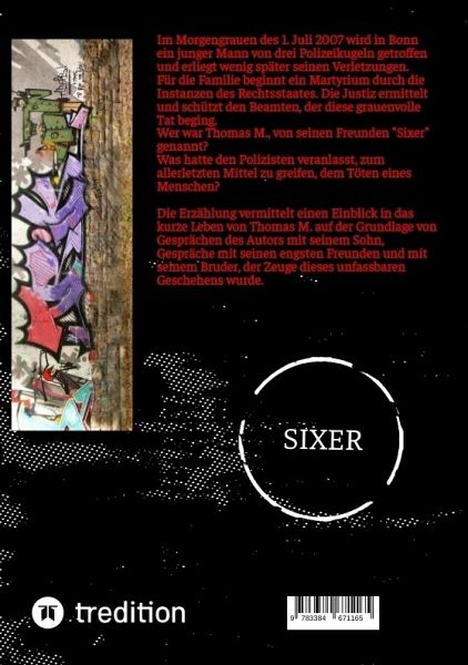 Im Morgengrauen des 1. Juli 2007 wird in Bonn ein junger Mann von drei Polizeikugeln getroffen und erliegt wenig später seinen Verletzungen. Für die Familie beginnt ein Martyrium durch die Instanzen des Rechtsstaates. Die Justiz ermittelt und schützt den Beamten, der diese grauenvolle Tat beging.Wer war Thomas M., von seinen Freunden "Sixer" genannt?Was hatte den Polizisten veranlasst, zum allerletzten Mittel zu greifen, dem Töten eines Menschen?Die Erzählung vermittelt einen Einblick in das kurze Leben von Thomas M. auf der Grundlage von Gesprächen des Autors mit seinem Sohn, Gespräche mit seinen engsten Freunden und mit seinem Bruder, der Zeuge dieses unfassbaren Geschehens wurde.