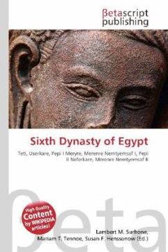 Please note that the content of this book primarily consists of articles available from Wikipedia or other free sources online. The Sixth Dynasty of Egypt is considered by many authorities as the last dynasty of the Old Kingdom of ancient Egypt, although The Oxford History of Ancient Egypt includes the Seventh and Eighth Dynasties as part of the Old Kingdom. Manetho writes that these kings ruled from Memphis, since their pyramids are placed at Saqqara, very close one to another.The Sixth Dynasty was founded by Teti, who had married Iput, commonly believed to be the daughter of King Unas of the Fifth Dynasty. Manetho claimed that Teti had been murdered by his bodyguard, but no contemporary sources confirm this. During this dynasty, expeditions were sent to Wadi Maghara in the Sinai to mine for turquoise and copper, as well as to the mines at Hatnub and Wadi Hammamat. Pharaoh Djedkara sent trade expeditions south to Punt and north to Byblos, and Pepy I sent expeditions not only to these locations, but also as far as Ebla.