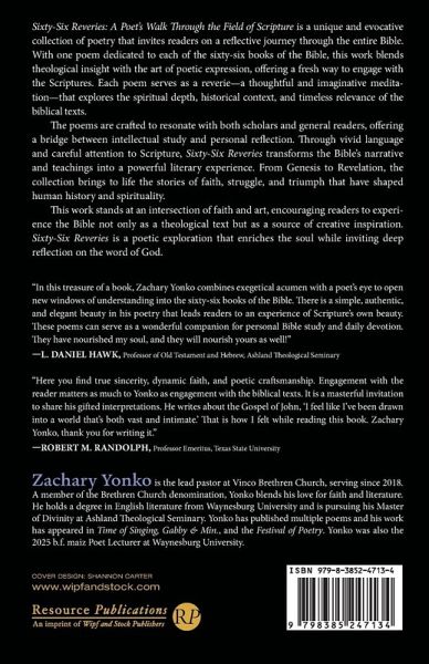 Sixty-Six Reveries: A Poet’s Walk Through the Field of Scripture is a unique and evocative collection of poetry that invites readers on a reflective journey through the entire Bible. With one poem dedicated to each of the sixty-six books of the Bible, this work blends theological insight with the art of poetic expression, offering a fresh way to engage with the Scriptures. Each poem serves as a reverie—a thoughtful and imaginative meditation—that explores the spiritual depth, historical context, and timeless relevance of the biblical texts. The poems are crafted to resonate with both scholars and general readers, offering a bridge between intellectual study and personal reflection. Through vivid language and careful attention to Scripture, Sixty-Six Reveries transforms the Bible’s narrative and teachings into a powerful literary experience. From Genesis to Revelation, the collection brings to life the stories of faith, struggle, and triumph that have shaped human history and spirituality. This work stands at an intersection of faith and art, encouraging readers to experience the Bible not only as a theological text but as a source of creative inspiration. Sixty-Six Reveries is a poetic exploration that enriches the soul while inviting deep reflection on the word of God.