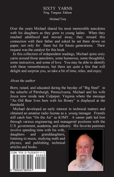 Over the years Michael shared his most memorable anecdotes with his daughters as they grew to young ladies. When they reached adulthood and moved away, they missed this connection with their father and asked he set them down on paper, not only for them but for future generations. Their request was the catalyst for this book. In this collection of independent readings, Michael spins sixty yarns around those anecdotes, some humerous, some thoughtful, some instructive, and some of love. You may be able to identify with these remembrances, but there are quite a few that will delight and surprise you, so take a bit of time, relax, and enjoy.
