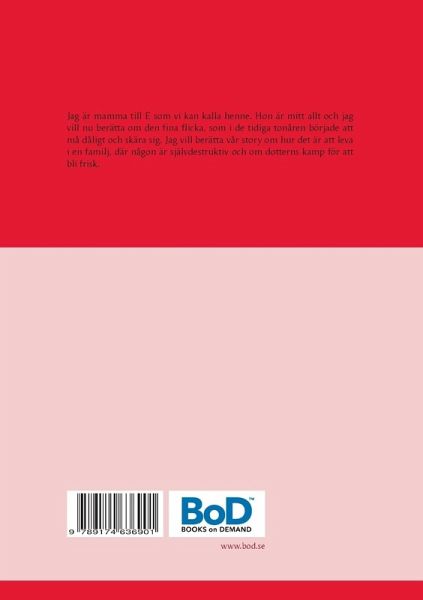 Jag är mamma till E som vi kan kalla henne. Hon är mitt allt och jag vill nu berätta om den fina flicka, som i de tidiga tonåren började att må dåligt och skära sig. Jag vill berätta vår story om hur det är att leva i en familj, där någon är självdestruktiv och om dotterns kamp för att bli frisk.