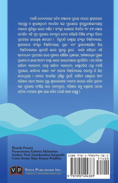 ଶ୍ରୀଜଗନ୍ନାଥ ମହାପ୍ରଭୁ ଓ ଶ୍ରୀକ୍ଷେତ୍ର ଧାମ ସମ୍ବନ୍ଧେ ସ୍କନ୍ଦ ପୁରାଣ ବୈଷ୍ଣବଖଣ୍ଡ ଅନ୍ତର୍ଗତ ଶ୍ରୀପୁରୁଷୋତ୍ତମ କ୍ଷେତ୍ର ମାହାତ୍ମ୍ୟ (ଉକ୍ରଳ ଖଣ୍ଡ)ରେ ବିସ୍ତାର ଭାବରେ ବର୍ଣ୍ଣିତ ହୋଇଅଛି । ମହର୍ଷି ବେଦବ୍ୟାସଙ୍କ ରଚିତ ଅଷ୍ଟାଦଶ ପୁରାଣ ସମୂହ ମଧ୍ୟରେ ସ୍କନ୍ଦ ପୁରାଣ ହେଉଛି ସବୁଠାରୁ ବିଶାଳକାୟ ପୁରାଣ; ଯେଉଁଥିରେ କି ଭାରତବର୍ଷର ପବିତ୍ର ଓ ପ୍ରାଚୀନ ତୀର୍ଥସ୍ଥଳମାନଙ୍କର ମହିମା ବର୍ଣ୍ଣନା କରାଯାଇଅଛି । ସଂସ୍କୃତ ଭାଷାରେ ବିରଚିତ ୩୮୬୩ ଶ୍ଳୋକ ସମାହିତ ଏହି ମୂଳ ପୁରାଣର ଗଦ୍ୟରୂପ ରଚନା କରିଛନ୍ତି ବିଶିଷ୍ଟ ସଂସ୍କୃତ ବିଦ୍ୱାନ ପ୍ରଫେସର ହରେକୃଷ୍ଣ ଶତପଥୀ I ଆଶା ପ୍ରଭୁ ଶ୍ରୀଜଗନ୍ନାଥଙ୍କ ମାହାତ୍ମ୍ୟ ଉପରେ ରଚିତ ପ୍ରାଚୀନ ସ୍କନ୍ଦ ପୁରାଣର ସଂକ୍ଷିପ୍ତ ସାର (ଗଦ୍ୟରୂପ), ଓଡ଼ିଶାର ସବୁ ଶ୍ରେଣୀର ପାଠକ ପାଠିକା ମାନଙ୍କର ଶ୍ରଦ୍ଧା ଲାଭ କରିବ ।