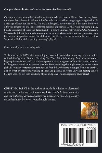 Can peace be made with one's ancestors, even after they are dead? Once upon a time my mother's fondest desire was to have a book published. Not just any book, mind you, but a beautiful volume full of wonder and sparkling imagery glittering forth with a message of hope for the world. We had similar goals, my mother and I, but came from very different generations and quite different personal experiences ... what with her being a pale, blonde immigrant of European descent, and I: a brown-skinned, native-born, POC American. We actually did not have much in common in how we chose to live out our lives, after I too became an independent adult. Nor did we necessarily agree on what should be perceived as 'inspirationally hopeful' regarding humanity's plight! Over time, this led to escalating strife. Yet here we are in 2023, with something we were able to collaborate on together – a project entitled Skating Across Thin Ice: Surviving The Times With Relationships Intact that my mother began quite awhile ago, and I recently completed – even though one of us is alive, while the other has long since passed on to greener pastures. How surprising this might seem, in an era where globally so many contemporary families and friends have become estranged from one another... But oh what an interesting weaving of ideas and personal-ancestral-Universal healing can be brought about by just such a melding of past and present minds, regarding The Future.