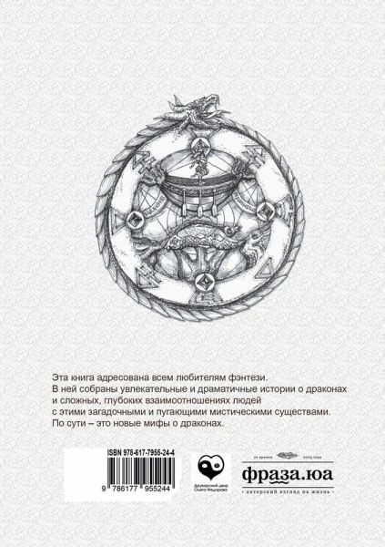 Jeta kniga adresovana vsem ljubiteljam fjentezi. V nej sobrany uvlekatel'nye i dramatichnye istorii o drakonah i slozhnyh, glubokih vzaimootnoshenijah ljudej s jetimi zagadochnymi i pugajushhimi misticheskimi sushhestvami. Po suti - jeto novye mify o drakonah.