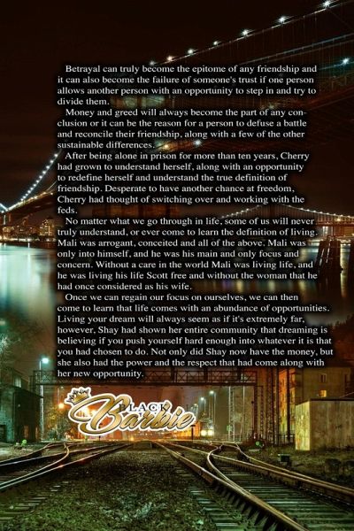 Betrayal can truly become the epitome of any friendship and it can also become the failure of someone's trust if one person allows another person with an opportunity to step in and try to divide them. Money and greed will always become the part of any conclusion or it can be the reason for a person to defuse a battle and reconcile their friendship, along with a few of the other sustainable differences. After being alone in prison for more than ten years, Cherry had grown to understand herself, along with an opportunity to redefine herself and understand the true definition of friendship. Desperate to have another chance at freedom, Cherry had thought about switching over and working with the feds.