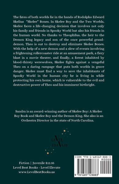 The fates of both worlds lie in the hands of Rodolpho Edward Skelius "Skelee" Bones. In Skelee Boy and the Two Worlds, Skelee faces a life-changing decision that involves not only his family and friends in Spooky World but also his friends in the human world. No thanks to Theophilus, the heir to the Demon King legacy and son of the once powerful grand-demon. Theo is out to destroy and eliminate Skelee Bones. With the help of a new demon and a slew of events involving a frightening rollercoaster ride at an amusement park, a fiery blast in a movie theater, and finally, a forest inhabited by blood-thirsty werewolves, Skelee fights against a vengeful Theo on a daring rampage that puts both worlds in grave danger. Skelee must find a way to save the inhabitants of Spooky World in the human city he is living in while protecting his own home, which is vulnerable to the evil and destructive power of Theo and his imminent birthright.