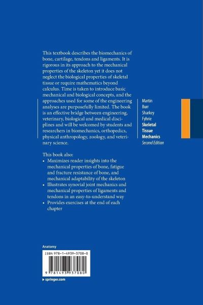This textbook describes the biomechanics of bone, cartilage, tendons and ligaments. It is rigorous in its approach to the mechanical properties of the skeleton yet it does not neglect the biological properties of skeletal tissue or require mathematics beyond calculus. Time is taken to introduce basic mechanical and biological concepts, and the approaches used for some of the engineering analyses are purposefully limited. The book is an effective bridge between engineering, veterinary, biological and medical disciplines and will be welcomed by students and researchers in biomechanics, orthopedics, physical anthropology, zoology and veterinary science.