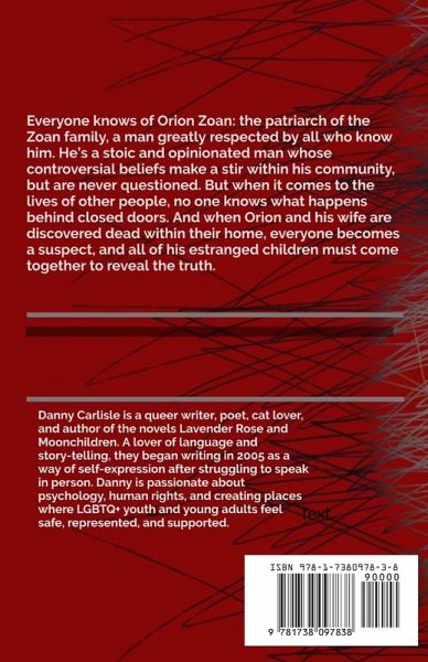 Everyone knows of Orion Zoan: the patriarch of the Zoan family, a man greatly respected by all who know him. He's a stoic and opinionated man whose controversial beliefs make a stir within his community, but are never questioned. But when it comes to the lives of other people, no one knows what happens behind closed doors. And when Orion and his wife are discovered dead within their home, everyone becomes a suspect, and all of his estranged children must come together to reveal the truth.