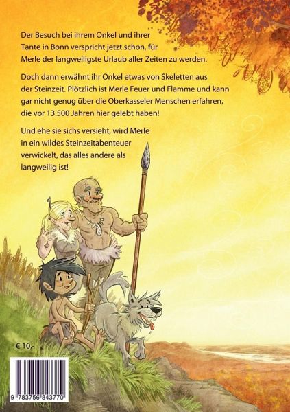 Der Besuch bei ihrem Onkel und ihrer Tante in Bonn verspricht jetzt schon, für Merle der langweiligste Urlaub aller Zeiten zu werden. Doch dann erwähnt ihr Onkel etwas von Skeletten aus der Steinzeit. Plötzlich ist Merle Feuer und Flamme und kann gar nicht genug über die Oberkasseler Menschen erfahren, die vor 13.500 Jahren hier gelebt haben! Und ehe sie sichs versieht, wird Merle in ein wildes Steinzeitabenteuer verwickelt, das alles andere als langweilig ist!