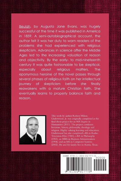 Beulah, by Augusta Jane Evans, was hugely successful at the time it was published in America in 1859. A semi-autobiographical account, the author felt it was her duty to warn readers of the problems she had experienced with religious skepticism. Advances in science after the Middle Ages led to the increasing valuation of reason and objectivity. By the early- to mid-nineteenth century it was quite fashionable to be skeptical, especially about religious matters. The eponymous heroine of the novel passes through several phases of religious faith on her intellectual journey of skepticism before she finally reawakens with a mature Christian faith. She eventually learns to properly balance faith and reason.