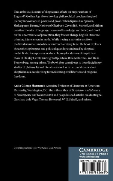 Introduction. Secularizing Skepticism? 1. Visionary Interrupted: Spenser's Skeptical Artwork, 2. Fantasies of Private Language: Shakespeare's 'The Phoenix and Turtle' and Donne's 'The Ecstasy' 3. Conformity/Neutrality in Lord Herbert of Cherbury 4. The Skeptical Fancies of Margaret Cavendish: Reoccupation 5. The Enchantments of Andrew Marvell: Skepticism and Taste Afterword. Experience in Crisis: Milton's Samson Agonistes.