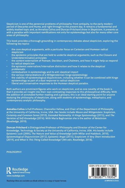 Both authors are prominent figures who work on skepticism, and so one novelty of the book is that it provides an insight into their own contrasting responses to this philosophical difficulty. With the addition of annotated further reading and a glossary, this is an ideal starting point for anyone studying the philosophy of skepticism, along with students of epistemology, metaphysics, and contemporary analytic philosophy.