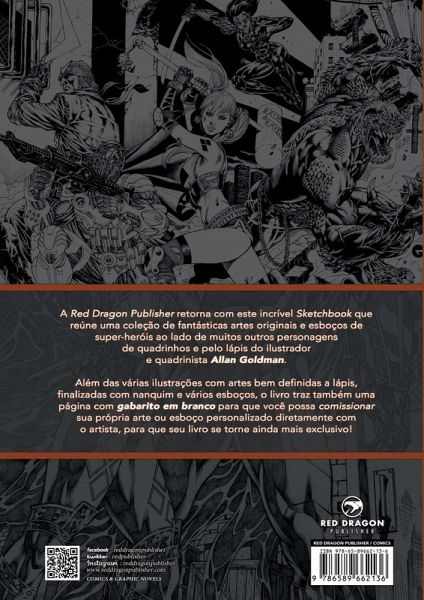 Allan Goldman [Edição Limitada] É com grande prazer que apresentamos nossos segundo volume de nossa série de uma coleção de fantásticas de artes originais e esboços de super-heróis e demais personagens de quadrinhos e animações reunidas em um incrível Sketchbook. Para essa edição o ilustrador é Allan Goldman (38 anos) é um desenhis