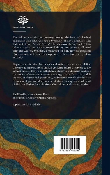 Embark on a captivating journey through the heart of classical civilization with John Addington Symonds' "Sketches and Studies in Italy and Greece, Second Series." This meticulously prepared edition offers a window into the art, cultural history, and enduring allure of Italy and Greece. Symonds, a renowned scholar, provides insightful observations and vivid descriptions of these lands steeped in antiquity. Explore the historical landscapes and artistic treasures that define these iconic regions. From the sun-drenched shores of Greece to the vibrant cities of Italy, this collection of sketches and studies captures the essence of travel and discovery in a bygone era. Delve into a rich tapestry of history and geography, as Symonds unveils the timeless beauty and profound influence of these European cradles of civilization. Perfect for enthusiasts of travel, art, and classical studies. This work has been selected by scholars as being culturally important, and is part of the knowledge base of civilization as we know it. This work is in the public domain in the United States of America, and possibly other nations. Within the United States, you may freely copy and distribute this work, as no entity (individual or corporate) has a copyright on the body of the work. Scholars believe, and we concur, that this work is important enough to be preserved, reproduced, and made generally available to the public. We appreciate your support of the preservation process, and thank you for being an important part of keeping this knowledge alive and relevant.