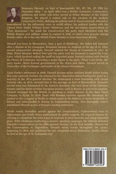 Benjamin Disraeli, 1st Earl of Beaconsfield, KG, PC, DL, JP, FRS (21 December 1804 - 19 April 1881) was a British statesman, Conservative politician and writer who twice served as Prime Minister of the United Kingdom. He played a central role in the creation of the modern Conservative Party, defining its policies and its broad outreach. Disraeli is remembered for his influential voice in world affairs, his political battles with the Liberal Party leader William Ewart Gladstone, and his one-nation conservatism or "Tory democracy". He made the Conservatives the party most identified with the British Empire and military action to expand it, both of which were popular among British voters. He is the only British Prime Minister to have been born Jewish. Disraeli was born in Bloomsbury, then a part of Middlesex. His father left Judaism after a dispute at his synagogue; Benjamin became an Anglican at the age of 12. After several unsuccessful attempts, Disraeli entered the House of Commons in 1837. In 1846, Prime Minister Robert Peel split the party over his proposal to repeal the Corn Laws, which involved ending the tariff on imported grain. Disraeli clashed with Peel in the House of Commons, becoming a major figure in the party. When Lord Derby, the party leader, thrice formed governments in the 1850s and 1860s, Disraeli served as Chancellor of the Exchequer and Leader of the House of Commons. Upon Derby's retirement in 1868, Disraeli became prime minister briefly before losing that year's general election. He returned to the Opposition before leading the party to a majority in the 1874 general election. He maintained a close friendship with Queen Victoria who, in 1876, elevated him to the peerage, as Earl of Beaconsfield. Disraeli's second term was dominated by the Eastern Question-the slow decay of the Ottoman Empire and the desire of other European powers, such as Russia, to gain at its expense. Disraeli arranged for the British to purchase a major interest in the Suez Canal Company in Egypt. In 1878, faced with Russian victories against the Ottomans, he worked at the Congress of Berlin to obtain peace in the Balkans at terms favourable to Britain and unfavourable to Russia, its longstanding enemy. This diplomatic victory established Disraeli as one of Europe's leading statesmen. World events thereafter moved against the Conservatives. Controversial wars in Afghanistan and South Africa undermined his public support. He angered farmers by refusing to reinstitute the Corn Laws in response to poor harvests and cheap imported grain. With Gladstone conducting a massive speaking campaign, the Liberals defeated Disraeli's Conservatives at the 1880 general election. In his final months, Disraeli led the Conservatives in Opposition. Disraeli wrote novels throughout his career, beginning in 1826, and published his last completed novel, Endymion, shortly before he died at the age of 76. (wikipedia.org)