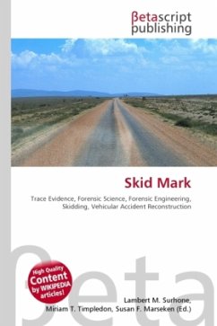 High Quality Content by WIKIPEDIA articles! In motoring terms, a skid mark is the mark a tire makes when a vehicle wheel stops rolling and slides or spins on the surface of the road. More generally, any solid which moves against another can cause visible marks, and is an important aspect of trace evidence analysis in forensic science and forensic engineering. Skid marks are important for finding the maximum and minimum vehicle speed prior to the impact or incident. Skidding can also occur on black ice or diesel deposits on the road and may not leave a mark at all, the absence of evidence not being evidence of absence. Skid marks are divided into "acceleration marks" created on acceleration, if the engine provides more power than the tire can transmit, "braking marks," if the brakes "lock up" and cause the tire to slide, or "yaw marks", if the tire slides sideways.