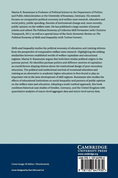 Skills and Inequality studies the political economy of education and training reforms from the perspective of comparative welfare state research. Highlighting the striking similarities between established worlds of welfare capitalism and educational regimes, Marius R. Busemeyer argues that both have similar political origins in the postwar period. He identifies partisan politics and different varieties of capitalism as crucial factors shaping choices about the institutional design of post-secondary education. The political and institutional survival of vocational education and training as an alternative to academic higher education is then found to play an important role in the later development of skill regimes. Busemeyer also studies the effects of educational institutions on social inequality and patterns of public opinion on the welfare state and education. Adopting a multi-method approach, this book combines historical case studies of Sweden, Germany, and the United Kingdom with quantitative analyses of macro-level aggregate data and micro-level survey data.