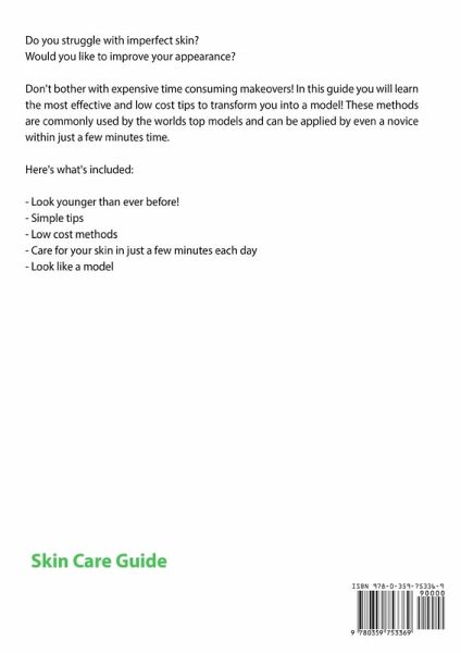Do you struggle with imperfect skin? Would you like to improve your appearance? Don't bother with expensive time consuming makeovers! In this guide you will learn the most effective and low cost tips to transform you into a model! These methods are commonly used by the worlds top models and can be applied by even a novice within just a few minutes time. Here's what's included: - Look younger than ever before! - Simple tips - Low cost methods - Care for your skin in just a few minutes each day - Look like a model --> Scroll to the top of the page and click add to cart to purchase instantly <-- Disclaimer: This author and or rights owner(s) make no claims, promises, or guarantees about the accuracy, completeness, or adequacy of the contents of this book, and expressly disclaims liability for errors and omissions in the contents within. This product is for reference use only.