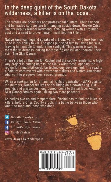 In the deep quiet of the South Dakota wilderness, a killer is on the loose. The victims are poachers and professional hunters. Their skinned and beheaded corpses are left hanging upside down. Rookie Criss County Deputy Rachel Redmond, a young woman with a troubled past and a need to prove herself, must find the killer. Native American legend speaks of a Sioux warrior who took too much pride in his ability to kill. The gods punished him by taking his skin, leaving him unable to endure the sunlight. This warrior is said to roam the wilderness looking for those he can kill and "borrow" their skin. The Skin Dancer. There's a lot on the line for Rachel and the county residents. A highway project is cutting across the Sioux wilderness, opening the region for a multi-billion-dollar technology development. The road is a point of controversy with environmentalists and Native Americans who want to preserve their sacred grounds. When a spokesman for an animal rights organization (WAR) claims the murders, Rachel realizes she's sitting on a powder keg. Old wounds and grievances, long buried, come to the surface. And the Skin Dancer strikes again, killing two more poachers. As bodies pile up and tempers flare, Rachel has to find the killer, or killers, before Criss County erupts in a battle between those who want the road and those who don't.