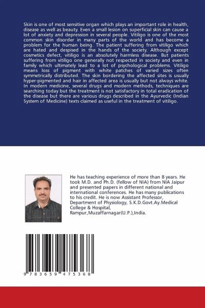 Skin is one of most sensitive organ which plays an important role in health, disease as well as beauty. Even a small lesion on superficial skin can cause a lot of anxiety and depression in several people. Vitiligo is one of the most common skin disorder in many parts of the world and has become a problem for the human being. The patient suffering from vitiligo which are hated and despised in the hands of the society. Although except cosmetics defect, vitiligo is an absolutely harmless disease. But patients suffering from vitiligo one generally not respected in society and even in family which ultimately lead to a lot of psychological problems. Vitiligo means loss of pigment with white patches of varied sizes often symmetrically distributed. The skin bordering the affected sites is usually hyper-pigmented and hair in affected area is usually but not always white. In modern medicine, several drugs and modern methods, techniques are searching today but the treatment is not satisfactory in total eradication of the disease but there are various drugs described in the Ayurvedic (Indian System of Medicine) texts claimed as useful in the treatment of vitiligo.