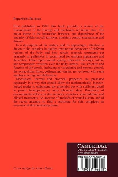 First published in 1983 this book provides a review of the fundamentals of the biology and mechanics of human skin. The major theme is the interaction between and dependence of the integrity of skin on, cell turnover, nutrition, control mechanisms and disease. Mechanical, thermal and electrical properties are presented separately in a way that should allow the mathematically inexperienced reader to understand the principles but with sufficient detail to permit development of more advanced ideas. Discussion of environmental effects on skin includes cosmetics, solar radiation and clinical treatments. An account of methods of wound closure and of the recent attempts to find a substitute for skin completes an overview of this fascinating tissue.