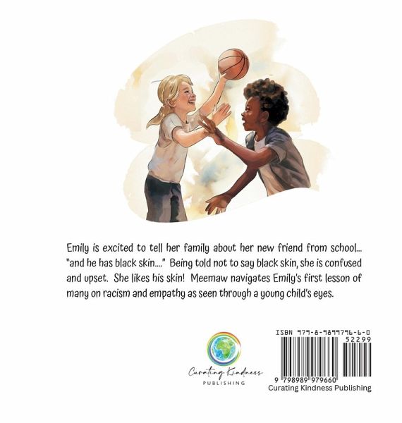 Emily is excited about her new friend who happens to have "black skin". Met with discomfort from her mom, she is bewildered. She then has a meaningful conversation about racism and compassion. SKIN is an emotionally compelling book.