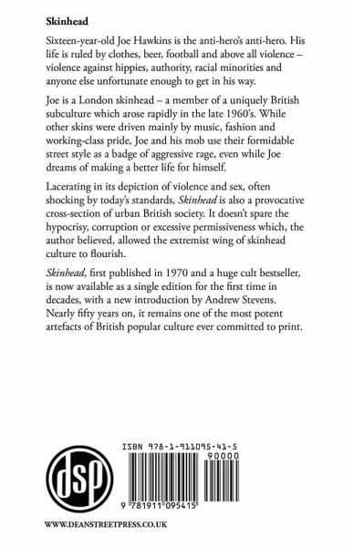 Sixteen-year-old Joe Hawkins is the anti-hero's anti-hero. His life is ruled by clothes, beer, football and above all violence - violence against hippies, authority, racial minorities and anyone else unfortunate enough to get in his way. Joe is a London skinhead - a member of a uniquely British subculture which arose rapidly in the late 1960's. While other skins were driven mainly by music, fashion and working-class pride, Joe and his mob use their formidable street style as a badge of aggressive rage, even while Joe dreams of making a better life for himself. Lacerating in its depiction of violence and sex, often shocking by today's standards, Skinhead is also a provocative cross-section of urban British society. It doesn't spare the hypocrisy, corruption or excessive permissiveness which, the author believed, allowed the extremist wing of skinhead culture to flourish. Skinhead, first published in 1970 and a huge cult bestseller, is now available for the first time in ebook form, with a new introduction by Andrew Stevens. Nearly fifty years on, it remains one of the most potent artefacts of British popular culture ever committed to print. "I did happen to read the book when it came out and I was quite interested in the whole Richard Allen cult... suedeheads and skinheads and smoothies were very much part of daily life. There was a tremendous air of intensity... something interesting grabbed me about the whole thing." Morrissey "(Richard Allen's) work shouldn't require a theoretical summing up, once enough of those to whom it appeals understand its attraction we will have superceded this society." Stewart Home
