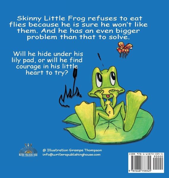 Skinny Little Frog refuses to eat flies because he is sure he won't like them. And he has an even bigger problem than that to solve. Will he hide under his lily pad, or will he find courage in his little heart to try?