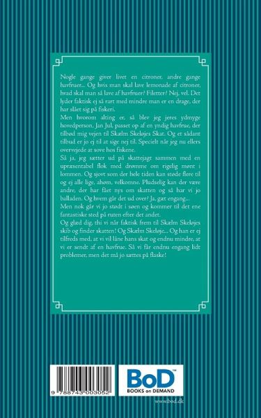 Nogle gange giver livet en citroner, andre gange havfruer ... Og hvis man skal lave lemonade af citroner, hvad skal man så lave af havfruer? Filetter? Nej, vel. Det lyder faktisk ej så rart med mindre man er en drage, der har slået sig på fiskeri. Men hvorom alting er, så blev jeg jeres ydmyge hovedperson, Jan Jul, passet op af en yndig havfrue, der tilbød mig vejen til Skælm Skeløjes Skat. Og et sådant tilbud er jo ej til at sige nej til. Specielt når jeg nu ellers overvejede at sove hos fiskene. Så ja, jeg sætter ud på skattejagt sammen med en upræsentabel flok med drømme om rigelig mønt i lommen. Og sjovt som der hele tiden kan støde flere til og ej alle lige, ahøm, velkomne. Pludselig kan der være andre, der har fået nys om skatten og så har vi jo balladen. Og hvem går det ud over? Ja, gæt engang ... Men nok går vi jo stødt i søen og kommer til det ene fantastiske sted på ruten efter det andet. Og glæd dig, thi vi når faktisk frem til Skælm Skeløjes skib og finder skatten! Og Skælm Skeløje ... Og han er ej tilfreds med, at vi vil låne hans skat og endnu mindre, at vi er sendt af en havfrue. Så vi får endnu engang lidt problemer, men det må jo sættes på flaske!