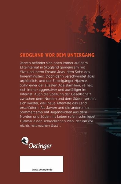 Jarven befindet sich noch immer auf dem Eliteinternat in Skogland gemeinsam mit Ylva und ihrem Freund Joas, dem Sohn des Innenministers. Doch dann verschwindet Joas urplötzlich, und der Einzelgänger Hjalmar, Sohn einer der ältesten Adelsfamilien des Landes, verhält sich immer aggressiver und auffälliger. Auch die Spaltung der Gesellschaft zwischen dem Norden und dem Süden Skoglands vertieft sich wieder, weil neue Attentate das Land erschüttern. Als Jarven und die anderen ein Sommercamp mit Jugendlichen aus dem Norden und Süden ins Leben rufen, schmiedet Hjalmar einen schrecklichen Plan, der ihn vor nichts haltmachen lässt ...