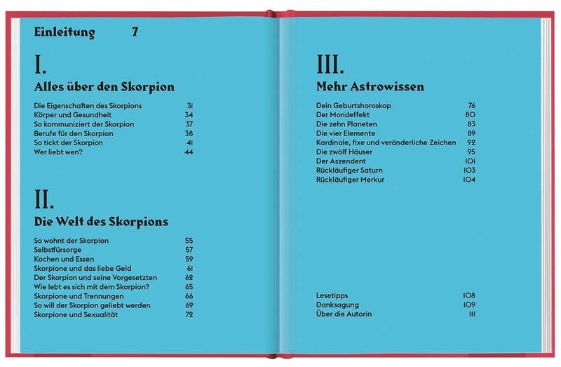 Hier wird nicht nur verraten, was dem Skorpion (24. Oktober bis 22. November) Glück bringt, das Sternzeichen-Buch gibt auch praktische Alltagstipps und beantwortet Fragen wie »Was braucht es, damit der Skorpion sich geliebt fühlt?«. Abgerundet wird das Horoskop-Buch mit einer Einführung in die Astrologie, die unter anderem dabei hilft, das Geburtshoroskop zu lesen und den Einfluss des Mondes zu deuten. Ob als Geschenk zum Geburtstag oder einfach so - das hochwertig mit Goldfolie veredelte Horoskop-Buch kommt garantiert gut an.