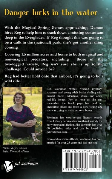 Danger lurks in the water! With the Magical Spring Games approaching, Damon hires Reg to help him to track down a missing contestant deep in the Everglades. If Reg thought this was going to be a walk in the (national) park, she's got another thing coming. Covering 1.5 million acres and home to both magical and non-magical predators, including those of the two-legged variety, Reg isn't sure she is up to the challenge. Could anyone be? Reg had better hold onto that airboat, it's going to be a wild ride. ¿¿¿¿¿¿¿¿¿¿ P.D. Workman's witchy writing carries you through a world that can make you stop…mehr