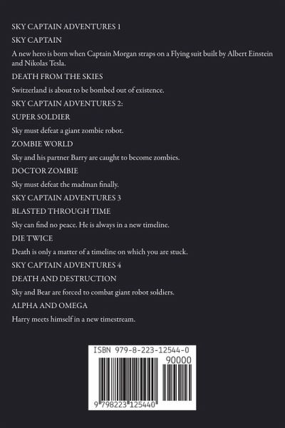 Hitler's minions fear only one thing during World War two and three...the shrill sound of a diving rocket man...Sky Captain! The four adventures contain six stories in total. Sky Captain Einstein and Tesla changed the course of time and history during World War two, causing time to alter repeatedly. Now, Sky Captain can never return home. Death from the Skies Hitler's powerful new weapons...thunder blimps... are flying to decimate Switzerland. Super Soldier Sky Captain battles a zombie robot soldier. Doctor Zombie A mad scientist is determined to turn every human into zombies. Zombie Factory Sky and Barry, captured by doctor zombie, are in danger of becoming zombies when Doctor Zombie catches them. Die Twice Sky Captain dies, or does he? and three more action packed Sky Captain adventures.