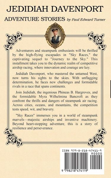 "Sky Races" is a thrilling sequel that effectively builds on the foundation set by Journey to the Sky. The novel dives deep into the steampunk world, combining high-stakes action with imaginative innovations and settings. From airships and mechanical traps to automatons and inventive machinery, the rich steampunk atmosphere adds excitement and variety to the narrative. The detailed descriptions of the airship race and the unique challenges faced by the competitors create an engaging and immersive reading experience. The interactions between the characters, their personal growth, and the underlying themes of resilience, friendship, and ingenuity are well-executed, making Sky Races a compelling continuation of Jedidiah Davenport's adventures.