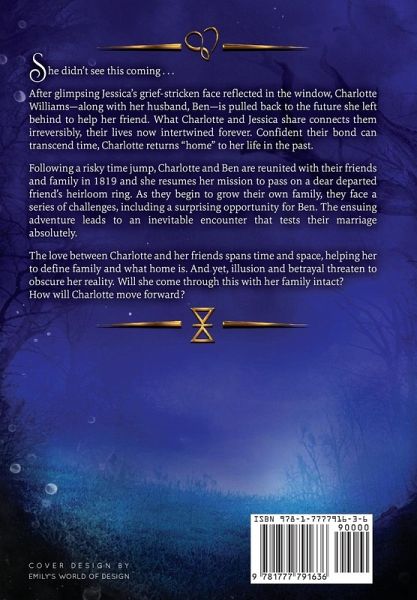 Charlotte is pulled back to the future she left behind to help her friend Jessica. What they share connects them irreversibly. After returning to 1819, Charlotte and Ben's marriage is tested absolutely.