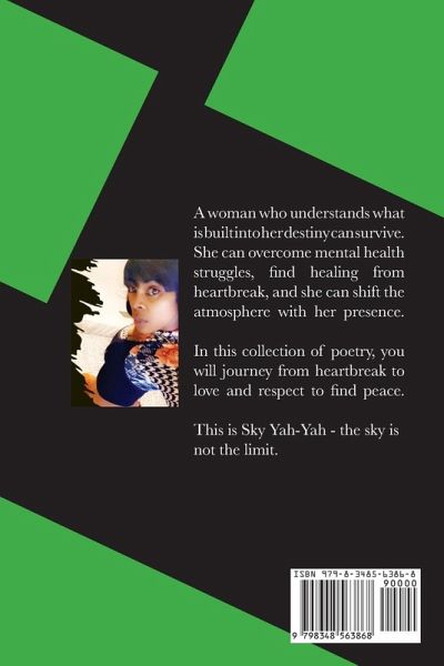 A woman who understands what is built into her destiny can survive. She can overcome mental health struggles, find healing from heartbreak, and she can shift the atmosphere with her presence. In this collection of poetry, you will journey from heartbreak to love and respect to find peace. This is Sky Yah-Yah - the sky is not the limit.
