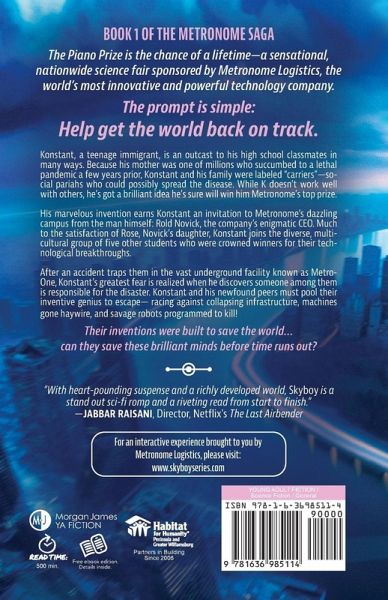 In Skyboy, a young genius must confront his greatest weakness to survive. Konstant is a brilliant 17-year-old immigrant whose pride and desire to rise to the top has exposed his blind spot - a failure to collaborate with others. When he wins a nationwide science fair sponsored by Metronome Logistics, the world’s most successful technology company, Konstant and five of his peers are invited to Metro-One, Metronome’s campus in New York City. An industrial accident strands them, along with the enigmatic CEO and his daughter, in an underground manufacturing facility. Forced to work together and use their prize-winning inventions to make it out alive, Konstant's greatest fear is realized when he discovers that someone among them is responsible for the attack.